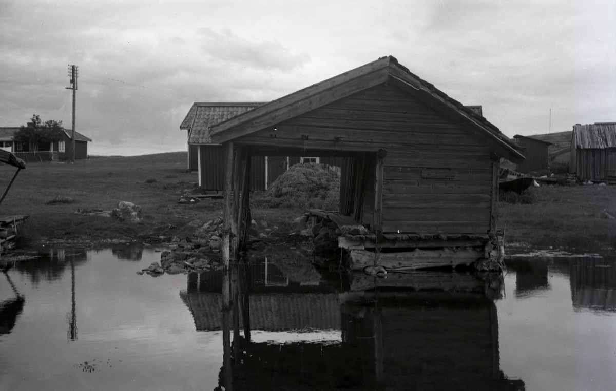Ett båthus och sjöbodar.