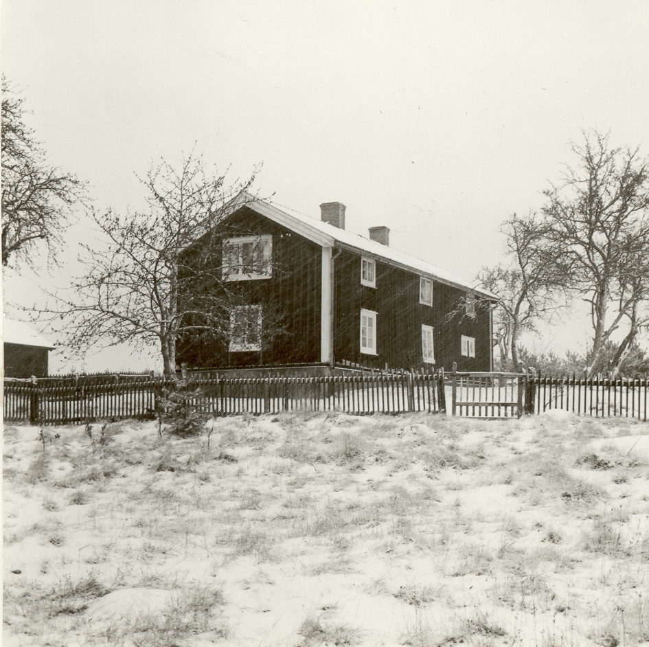 Parstuga och kvarstående uthusbyggnader. Från söder.