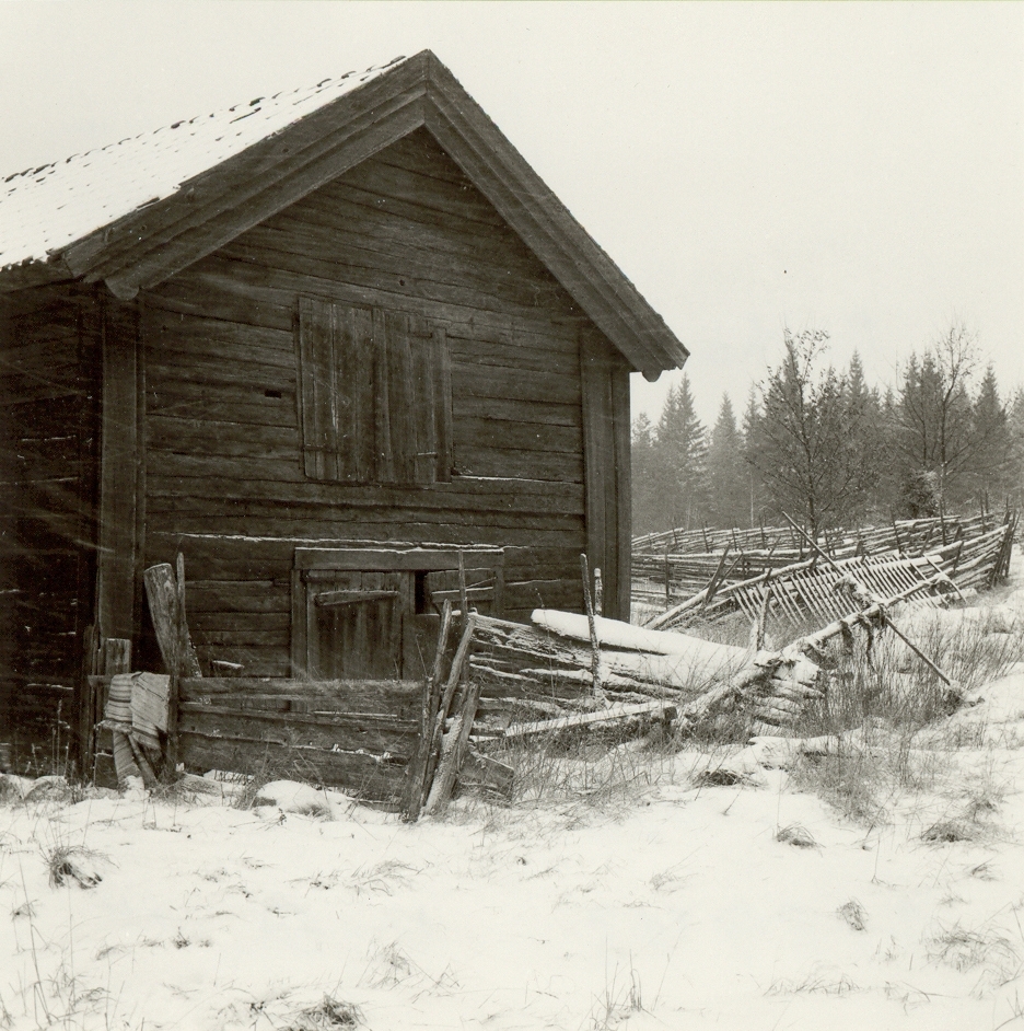 Uthuslängans nordöstra gavel med rester av svingården. I bakgrunden hägnaden kring kålgården. Från östsydöst.
