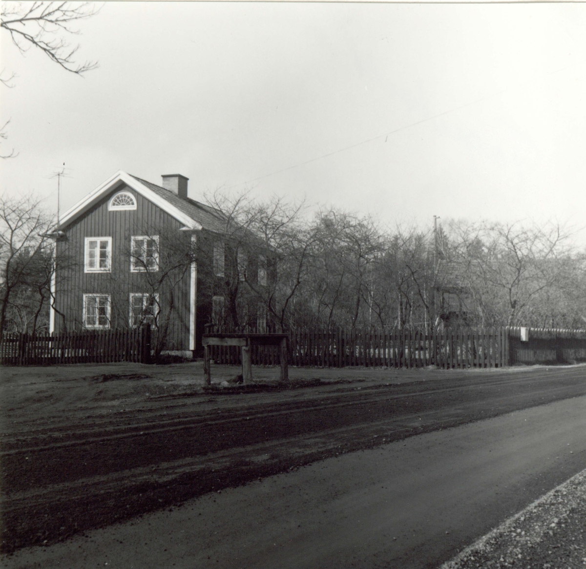 Ett bostadshus med lunettfönster och tomt med staket i Grönskåra.