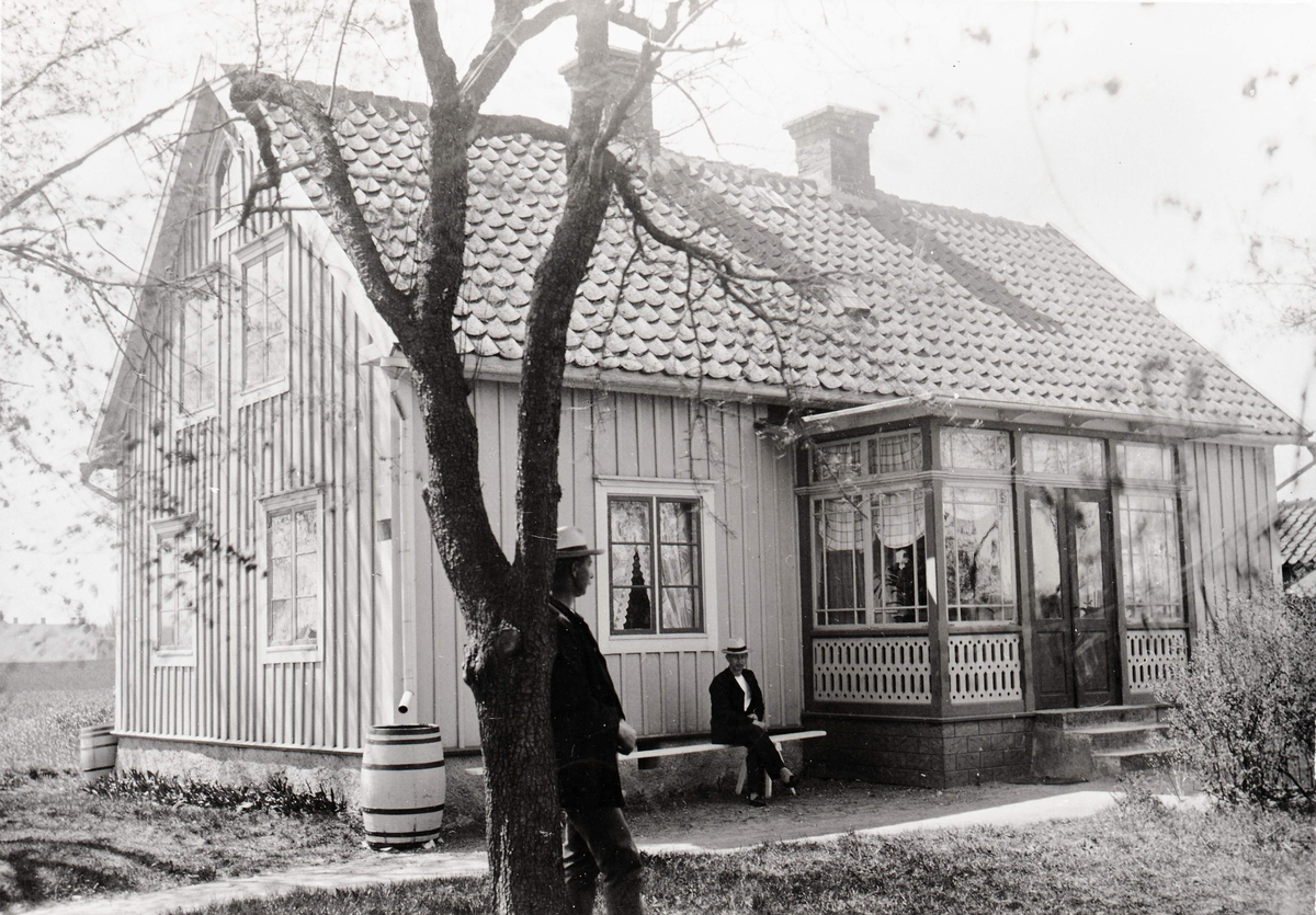 Trähus med glasad veranda. När fotot togs ägdes det av P A Pettersson.