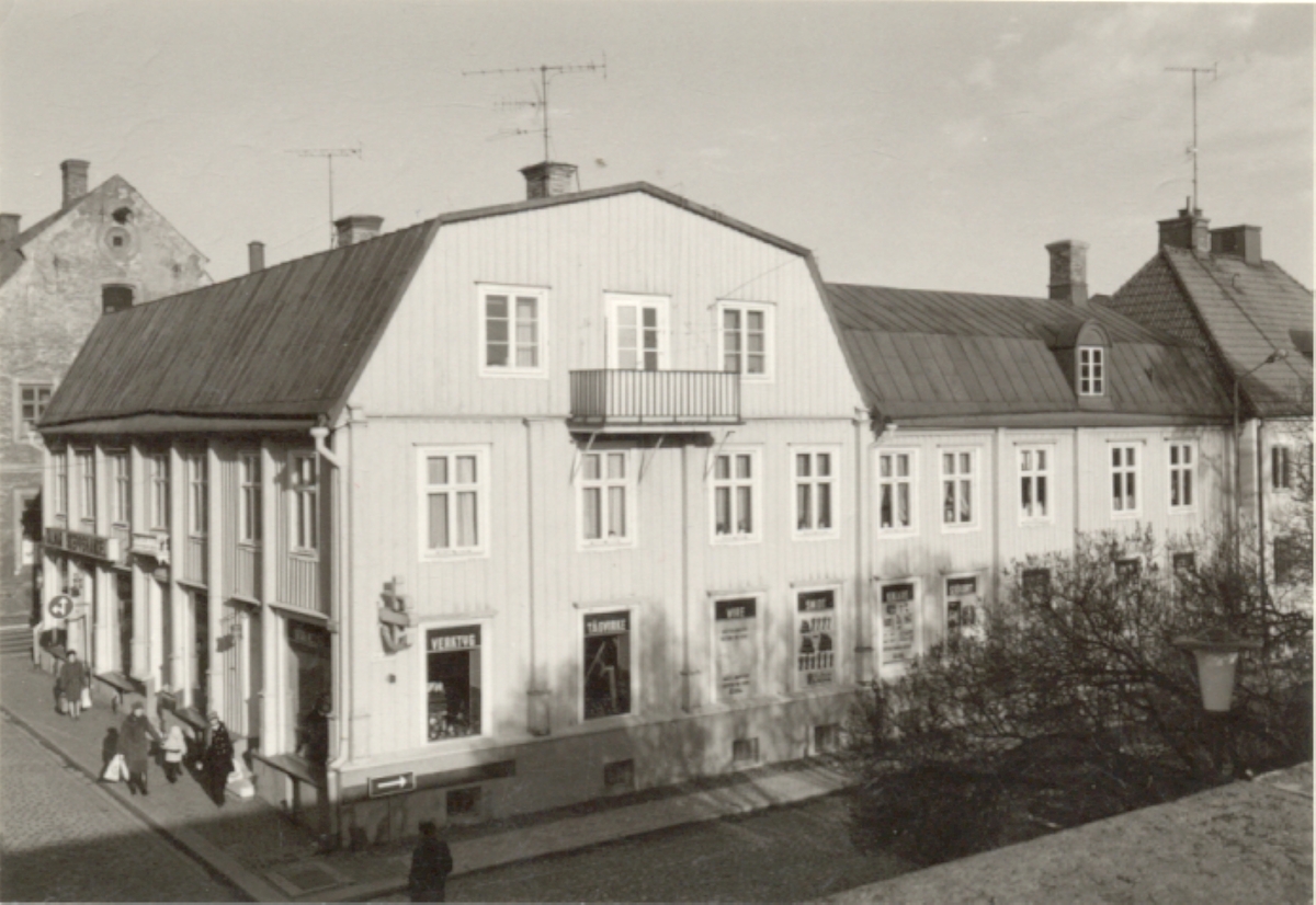 Dokumentation före omläggning av tak och efter grundmålning av fasad. Hörnet Kaggensgatan/Södra Vallgatan.