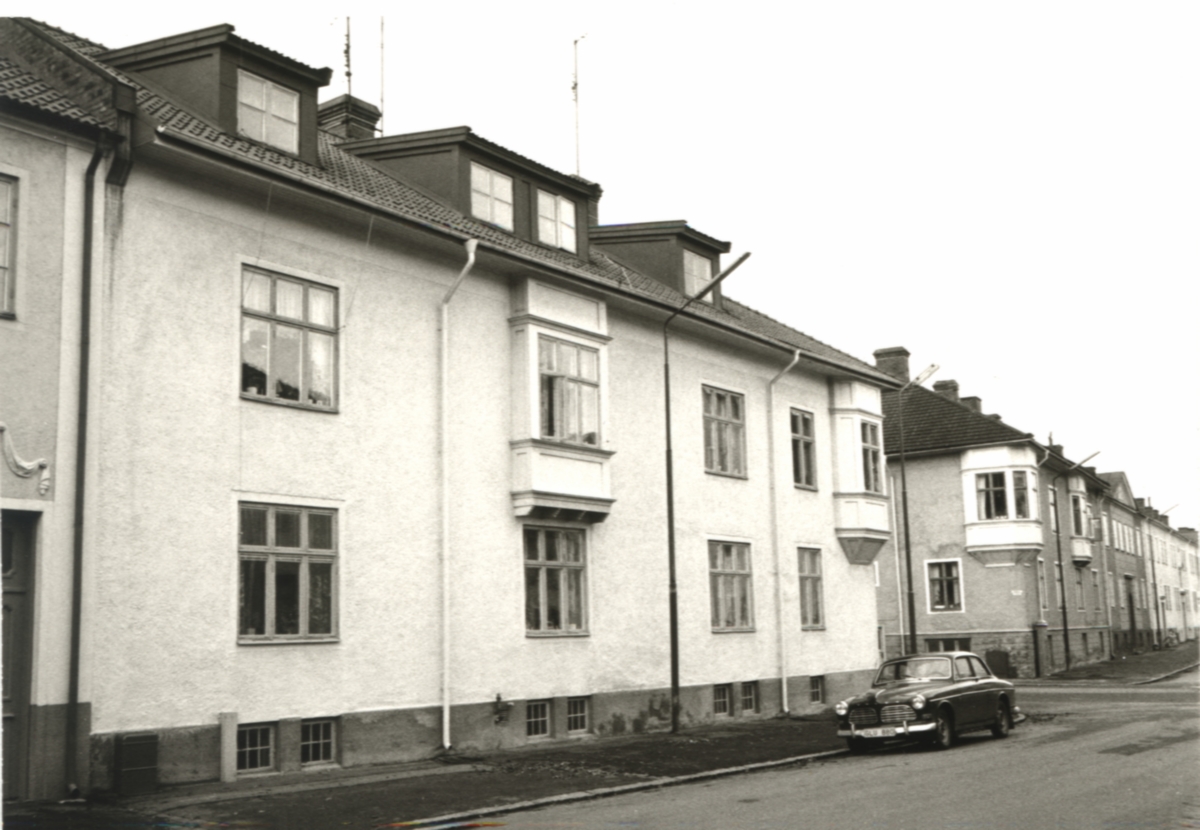 Ett radstående bostadshus på Tegnérgatan i Kalmar.