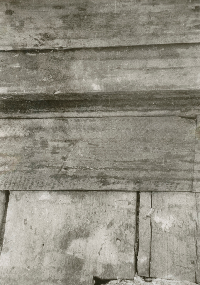 Rosenlundska huset. Detalj av timmervägg och taklist.