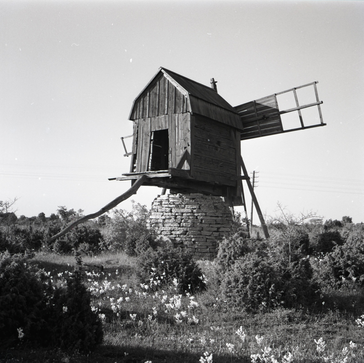 Väderkvarn på stenfot i Hagelstad.