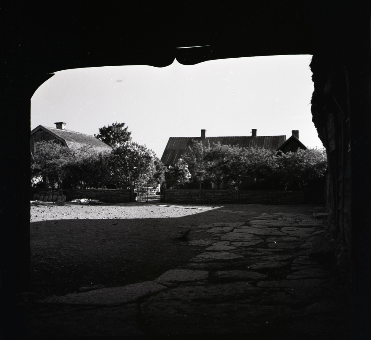 Motiv från gården Arbelunda 5 sedd genom ett portlider.
