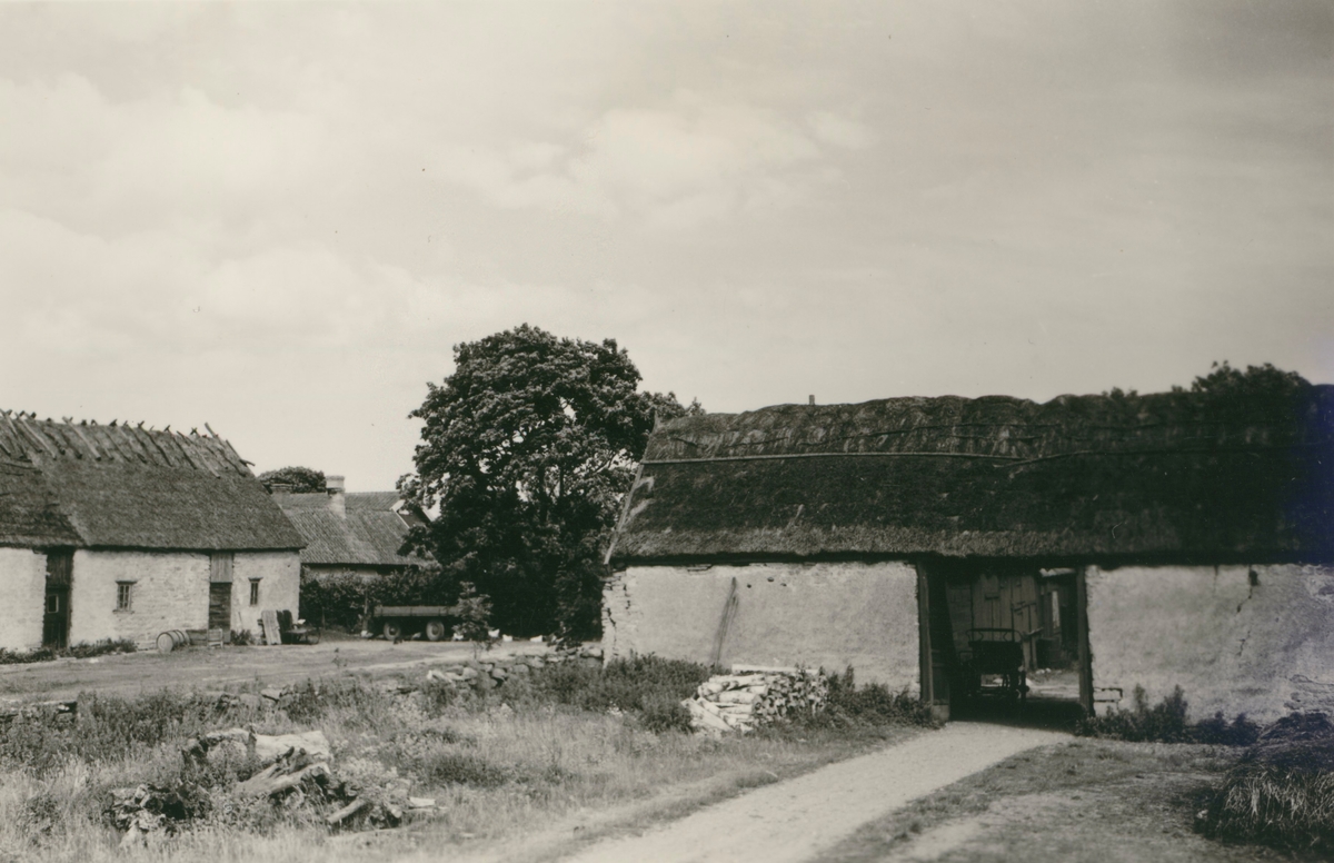 Portskjulet till höger. Till vänster Herbert Karlssons ladugård.