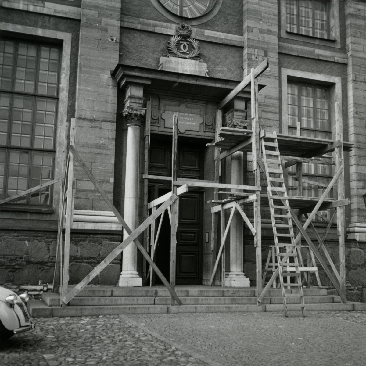 Portalen på Kalmar domkyrka under restaureringen 1959.