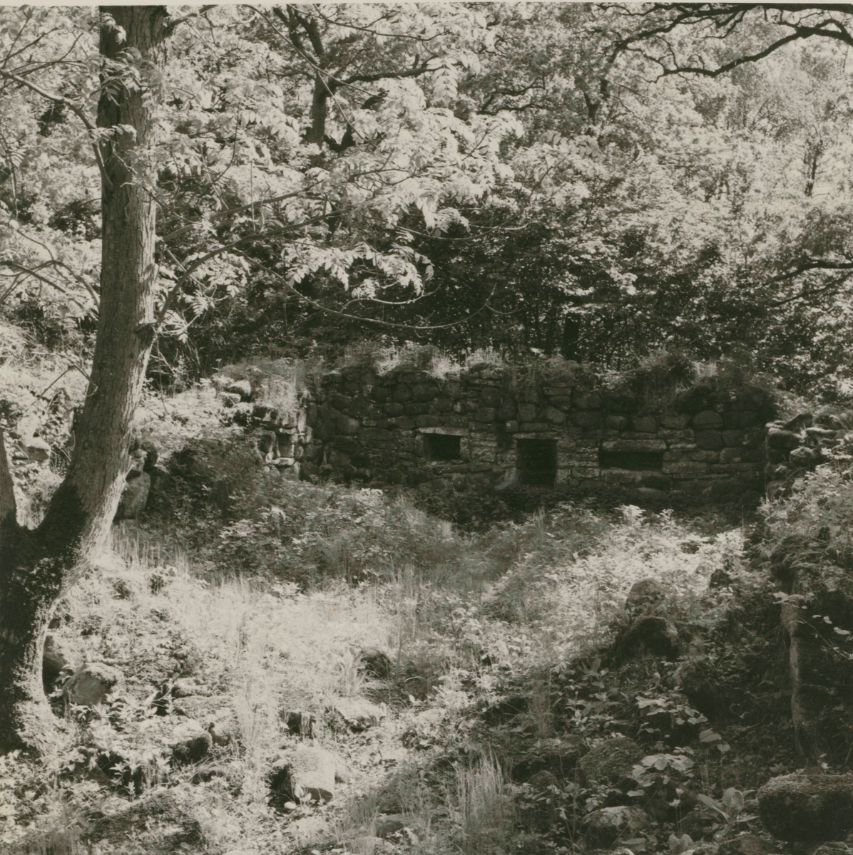 Ruin efter en medeltida befäst storgård, södra gaveln.