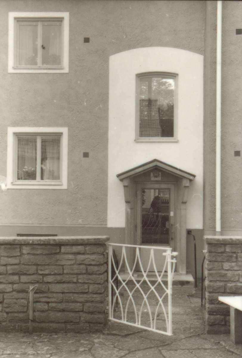 Kv Gullregnet. Entrén till en av Wolinska stiftelsen bostäder.