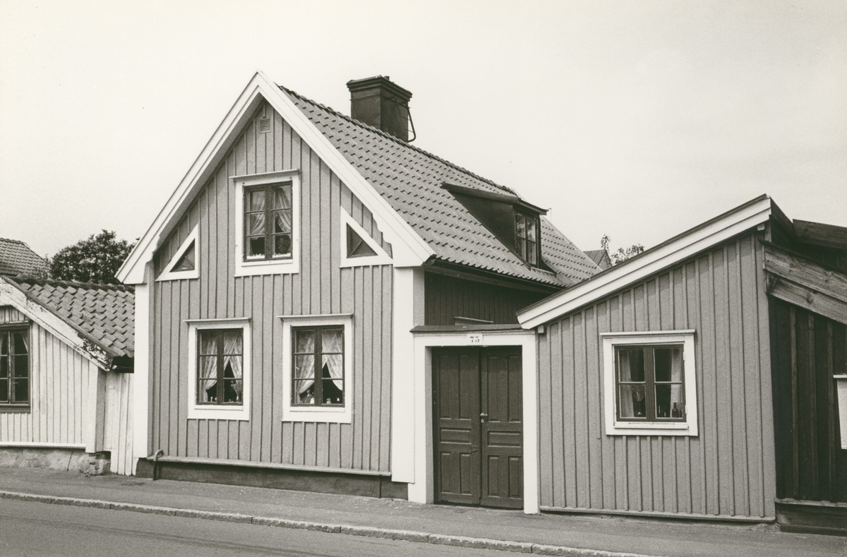 Byggnadsinventering juni 1974, enfamiljsbostad med fasad mot Norra Långgatan. Bilderna är tagna inom ramen för Kalmar kommuns inventering av Kvarnholmens bebyggelse 1974 och skänkta till länsmuseet.