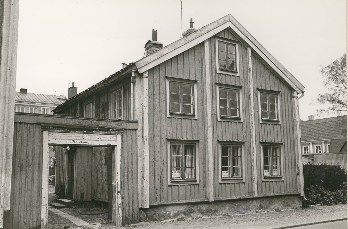 Byggnadsinventering juni 1974, bostadshus med fasad mot Proviantgatan. Bilderna är tagna inom ramen för Kalmar kommuns inventering av Kvarnholmens bebyggelse 1970-1971 och skänkta till länsmuseet.