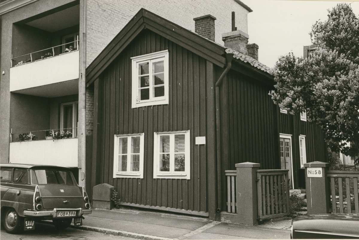 Byggnadsinventering juni 1974, bostadshus med fasad mot Norra Långgatan. Bilderna är tagna inom ramen för Kalmar kommuns inventering av Kvarnholmens bebyggelse 1974 och skänkta till länsmuseet.