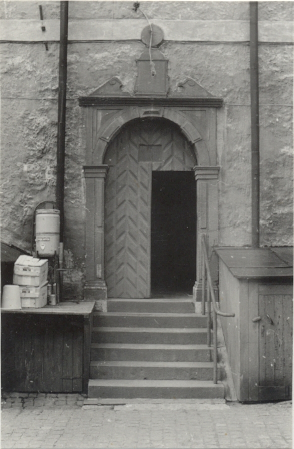 Stenportal åt gårdssidan som ursprungligen bör ha suttit som huvudportal mot Kaggensgatan.