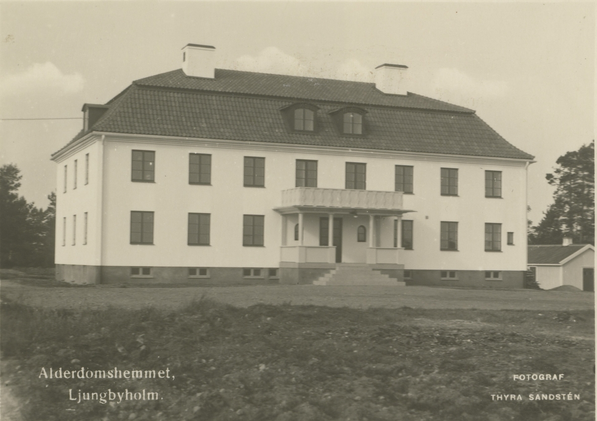 Vykort med ålderdomshemmet i Ljungbyholm.