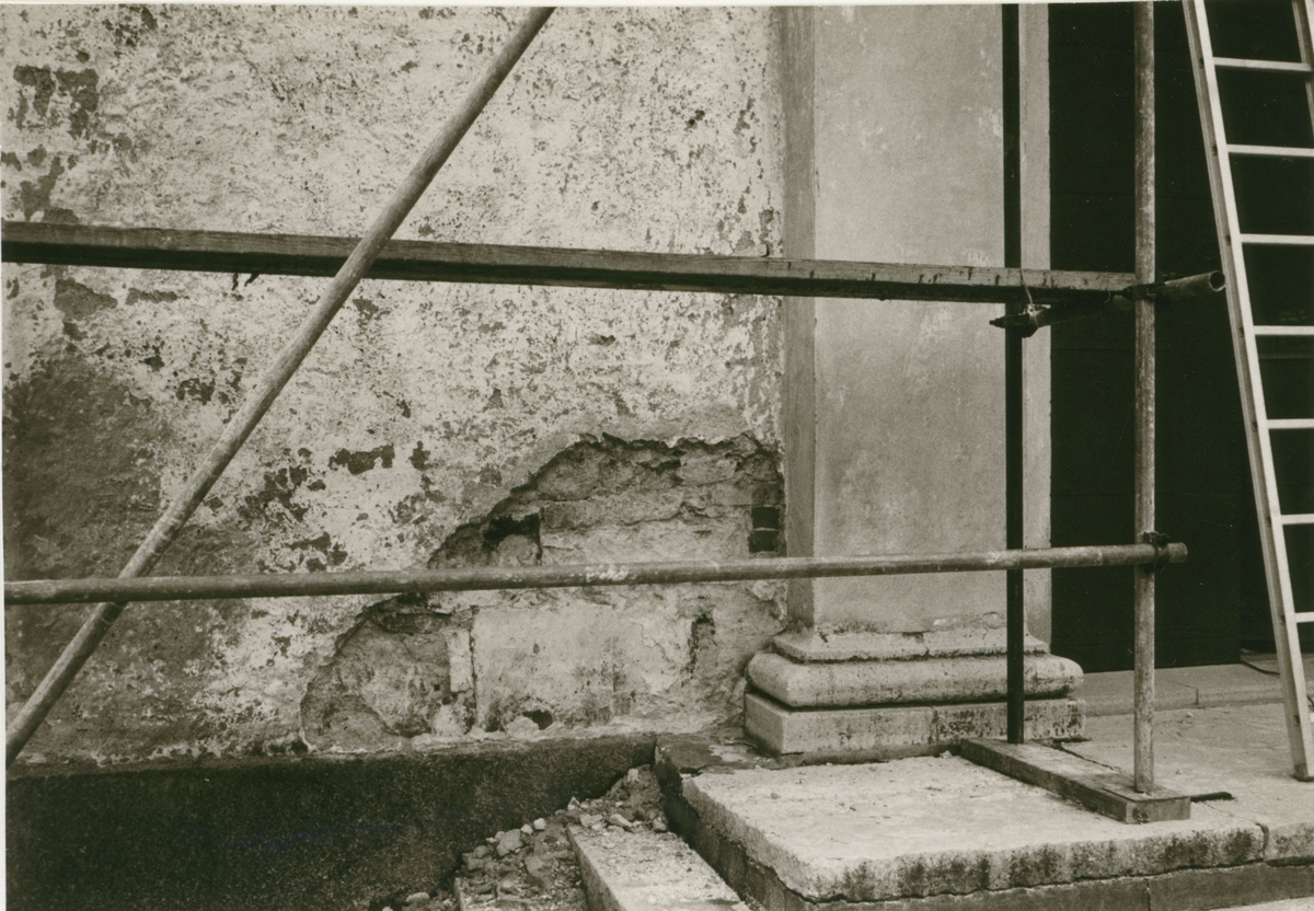 Västra tornfasaden norr om sydportalen i Madesjö kyrka, detalj.
