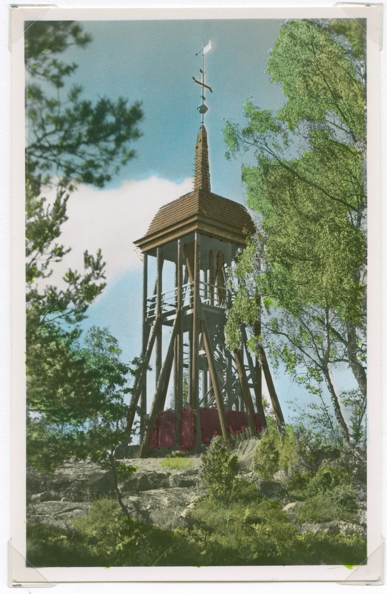 Fristående klockstapel vid Berga kyrka, uppförd 1950.