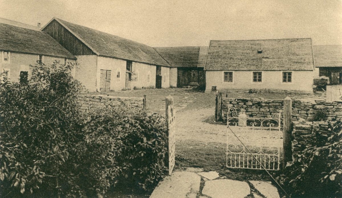 Närmast bygatan har varje gård en ladulänga med portlider. Genom detta kommer man in på den kringbyggda gårdsplanen, som medelst ett staket eller en stenmur skiljes från den i fonden belägna mangården.