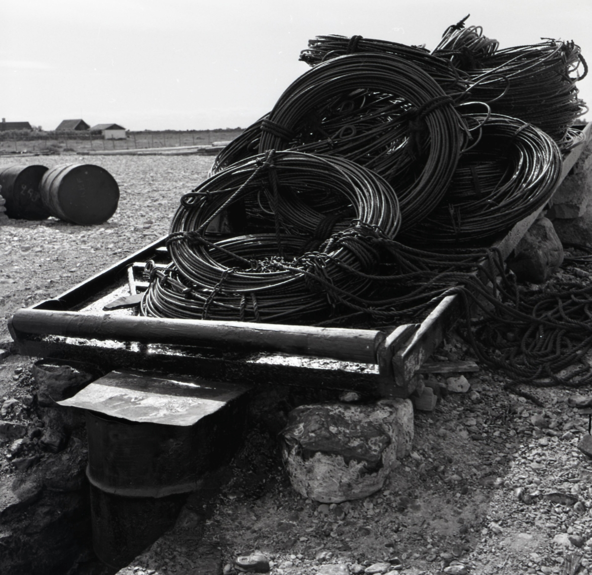 Wire på tjärbark vid tjärgryta.
