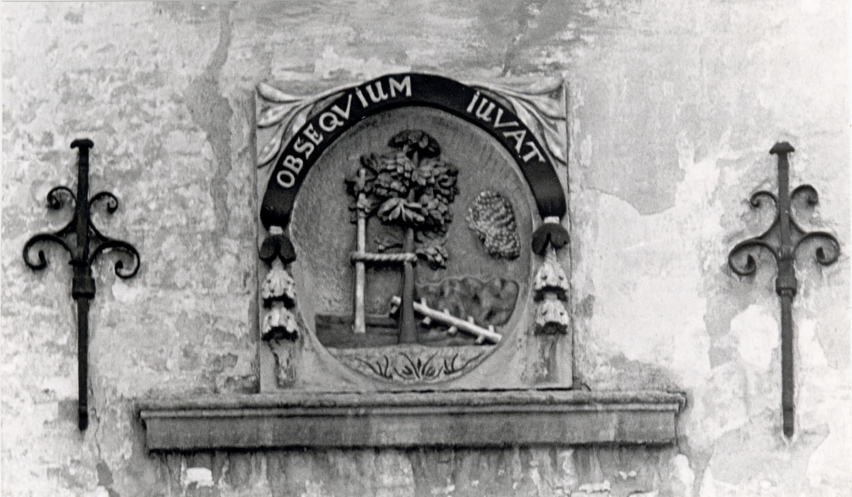 Stenrelief på rådhusets huvudfasad, huggen av Jakob Schultz och uppsatt 1688.