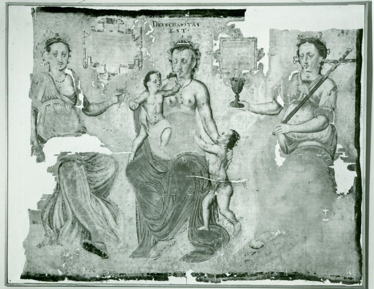 En skadad målning på en fana.