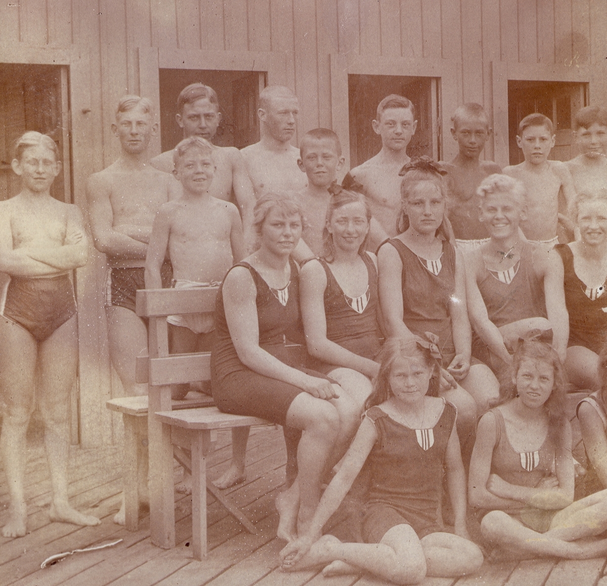 Övningsskolelever 1918. Dessa gick i skolan på Rostad och undervisades av en utbildad lärare och en elev.