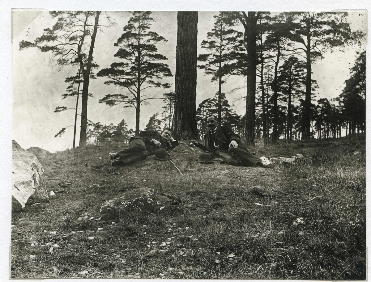 Två män i en skogsbacke.