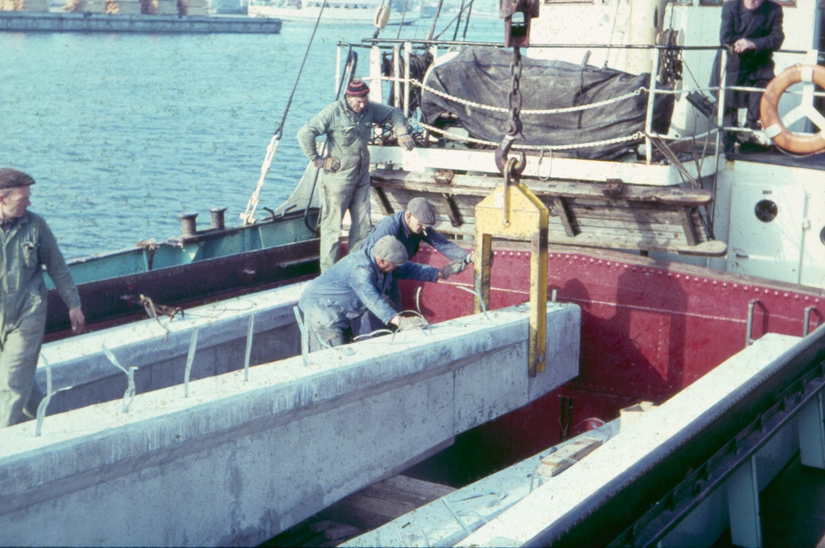 Balkar som ska levereras med fartyget "Lisa" till LM Ericssons nya fabrik, omkring 1968.