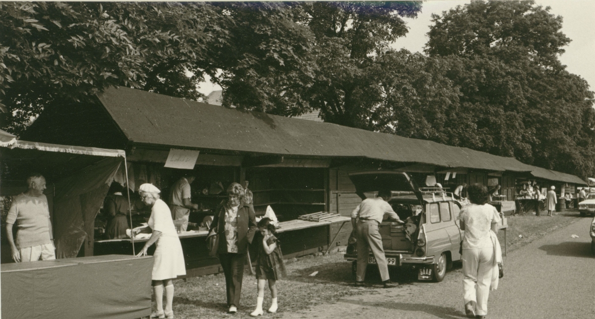Algutsrums marknad. De fasta bodarna längs marknadsgatan.