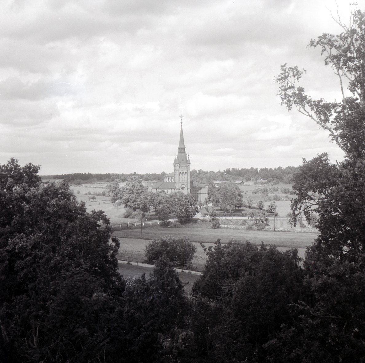 Gladhammar kyrka, utsikt från gravfältet på berget mot kyrkan.