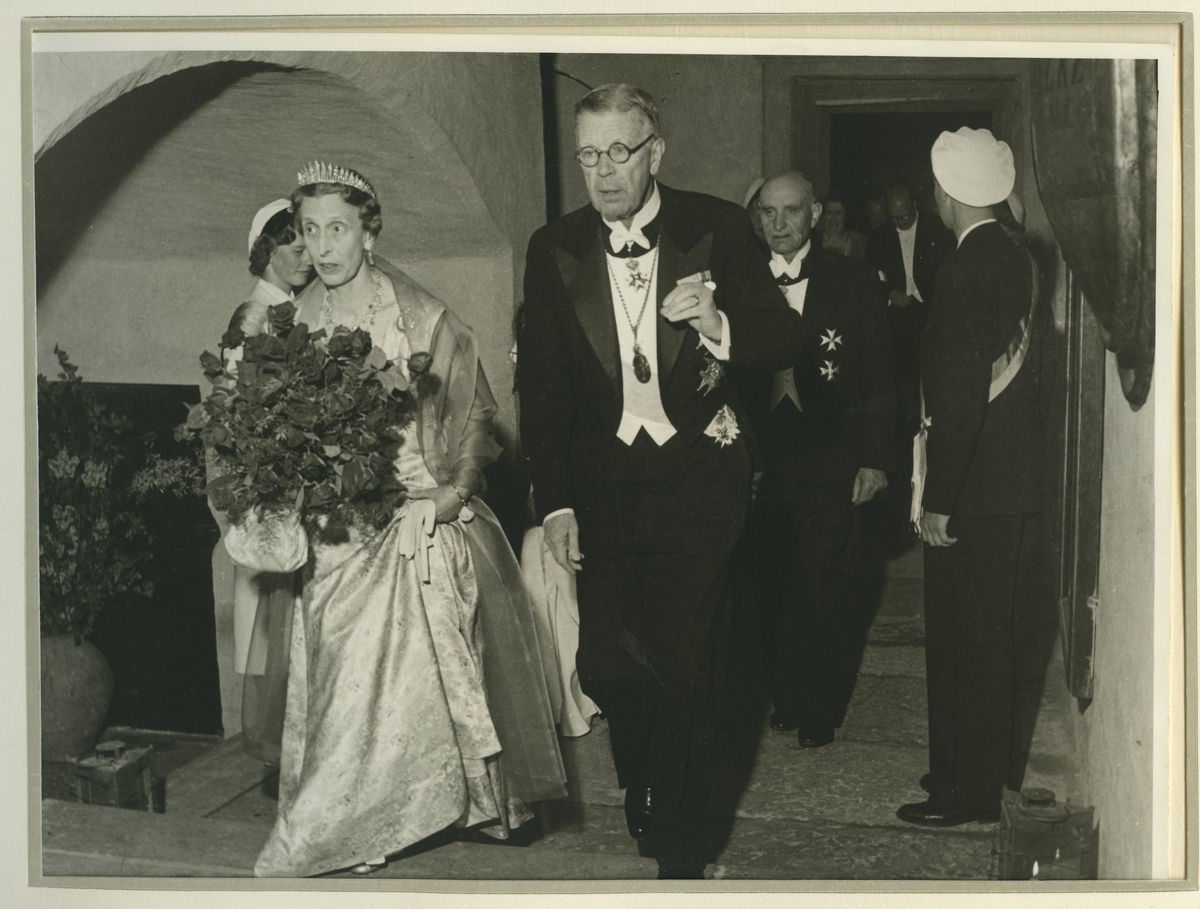 Drottning Louise och Gustaf VI Adolf besöker Kalmar slott.