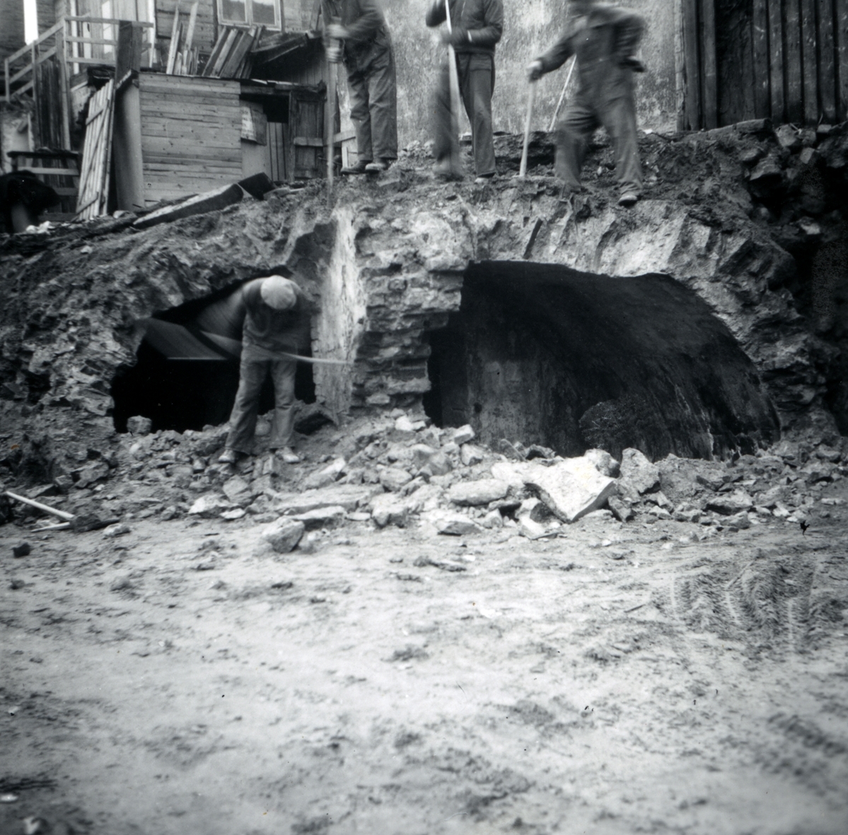 Rivning av hus med stenvalv framtagna i källaren, i kvarteret Krögaren på Kvarnholmen.