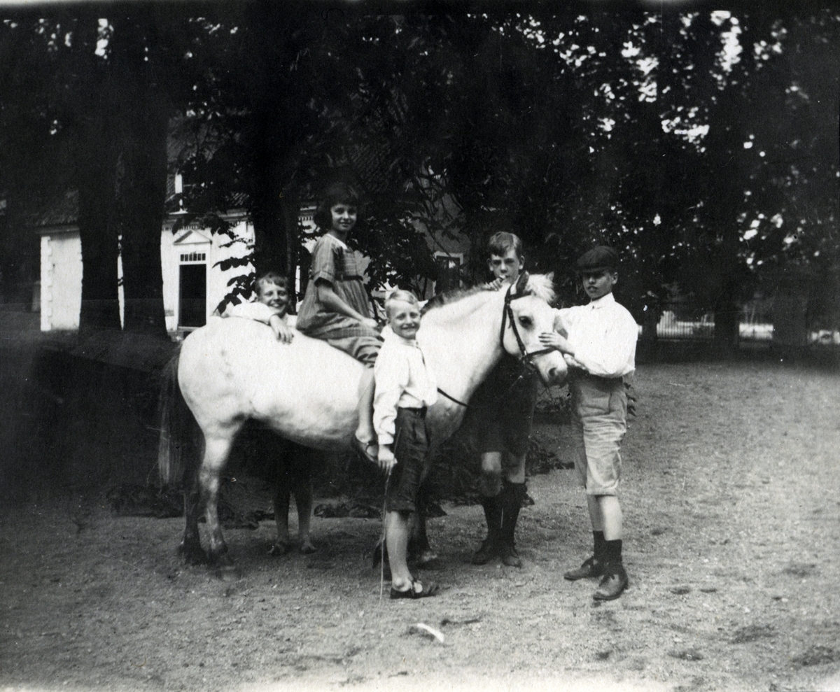 Sven, Sigrid på hästen Stumpan, Tore, Hans och Lars. Sigrid var krigsbarn från Tyskland, hon kom till Tuna efter första världskriget (1920 talet). Dotter till Hugo Hammarskjölds bekant David Carlson i Stettin, Sv Pommern.