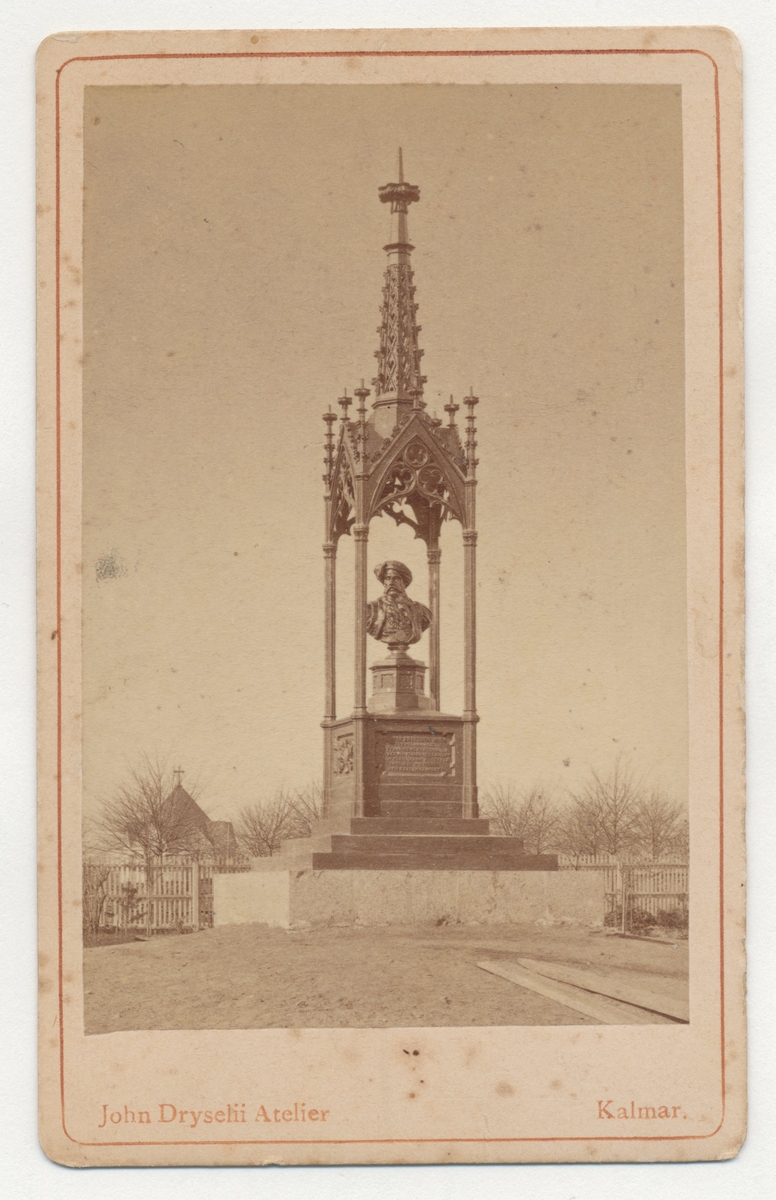 Monumentet över Gustav Vasas landstigning på Stensö stod från början på Stensö udde men flyttades på 1870-talet till den nyanlagda stadsparken.