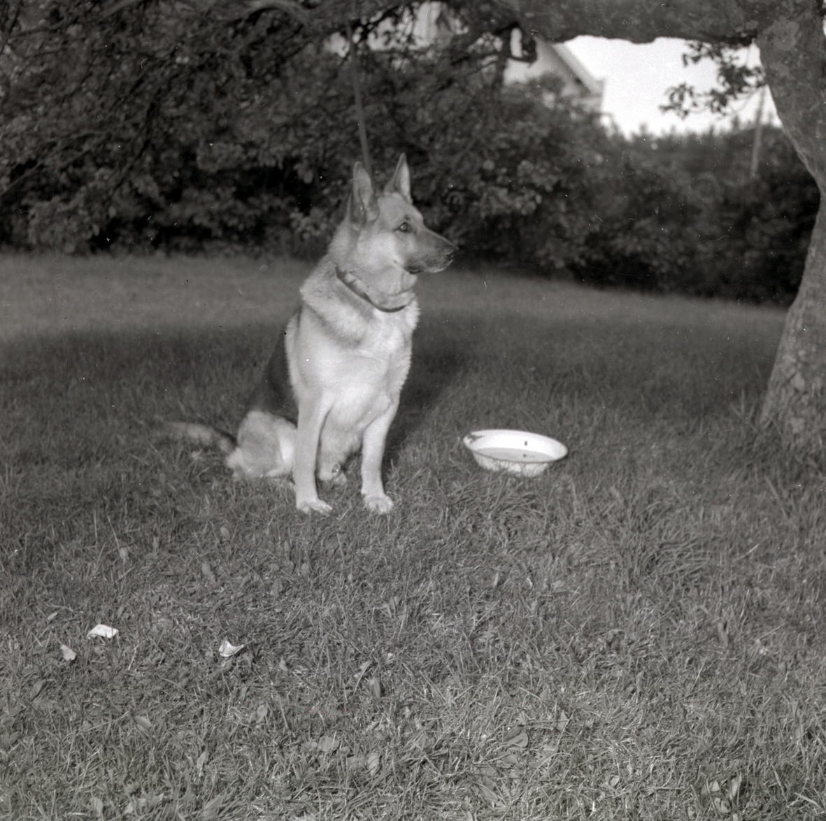 Brand i Norra Möckleby, Hagby. Sökhunden tar en paus i arbetet.