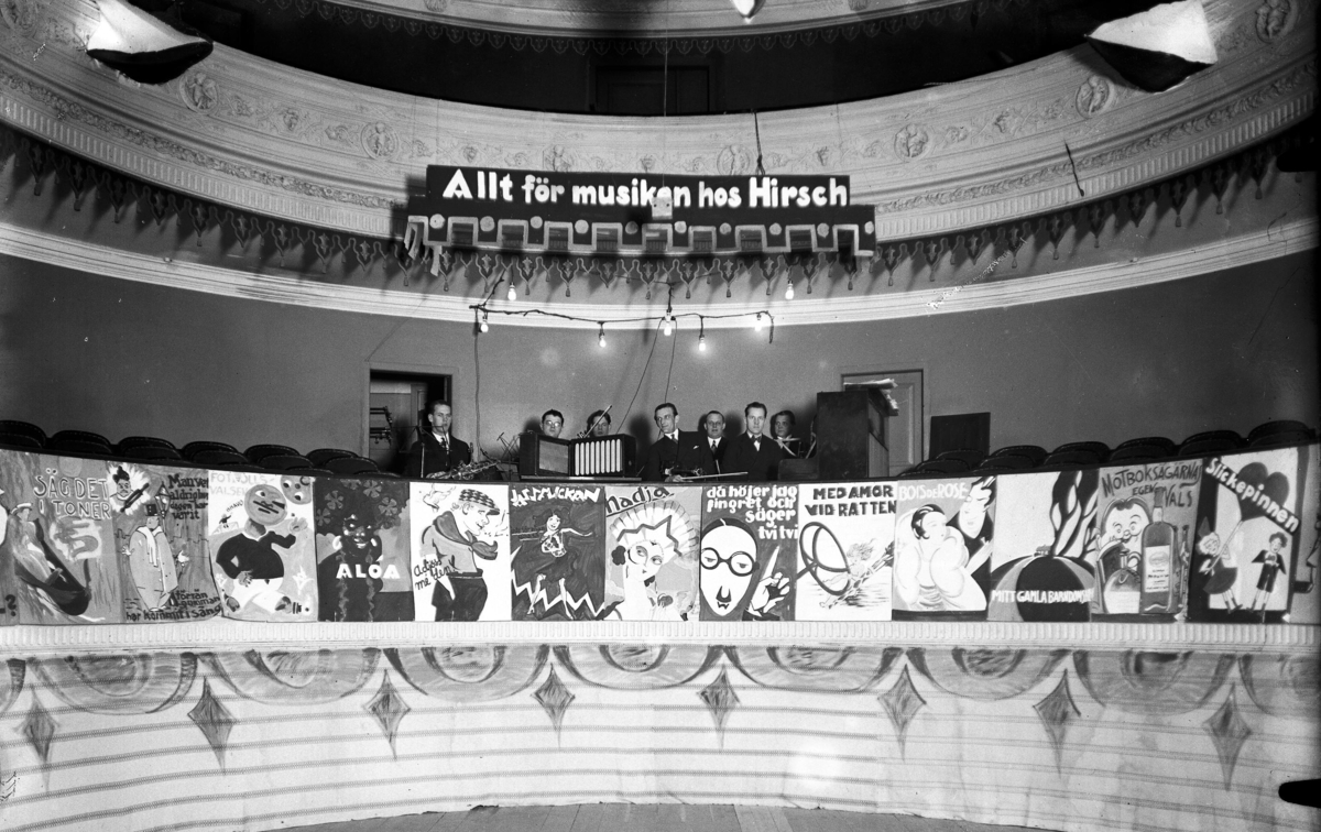 Orkester på första raden på Kalmar teater. Beställare: Hirschs Pianomagasin, Storgatan, Kalmar.