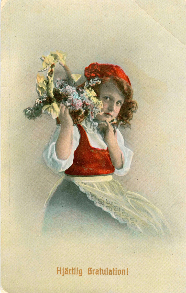 Ett gratulationskort till Karin Maria Andersson, Vegagatan 7, Kalmar från moster Hanna.