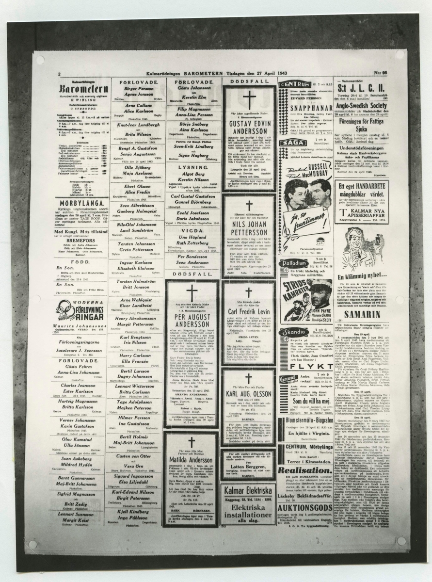 Sida ur tidningen Barometern från 27 april 1943.