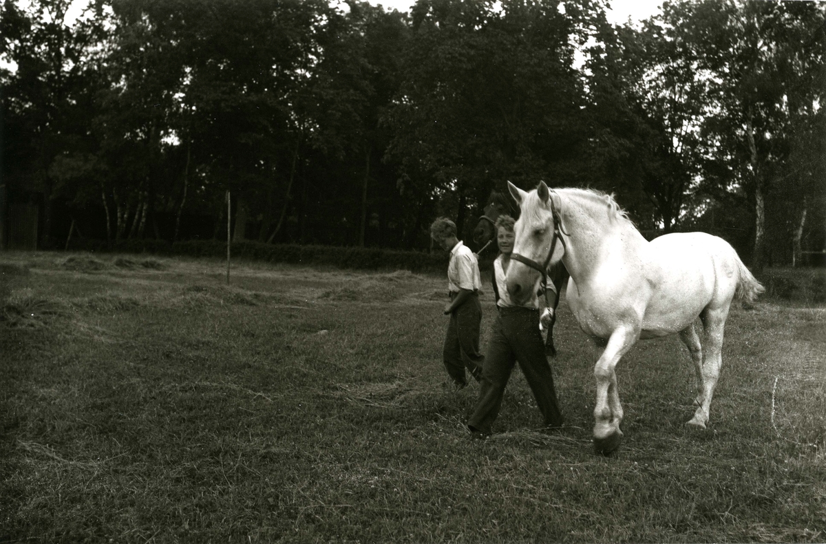 Ett jordbruk hörde till anläggningen och här ses två av pojkarna leda hem en häst.