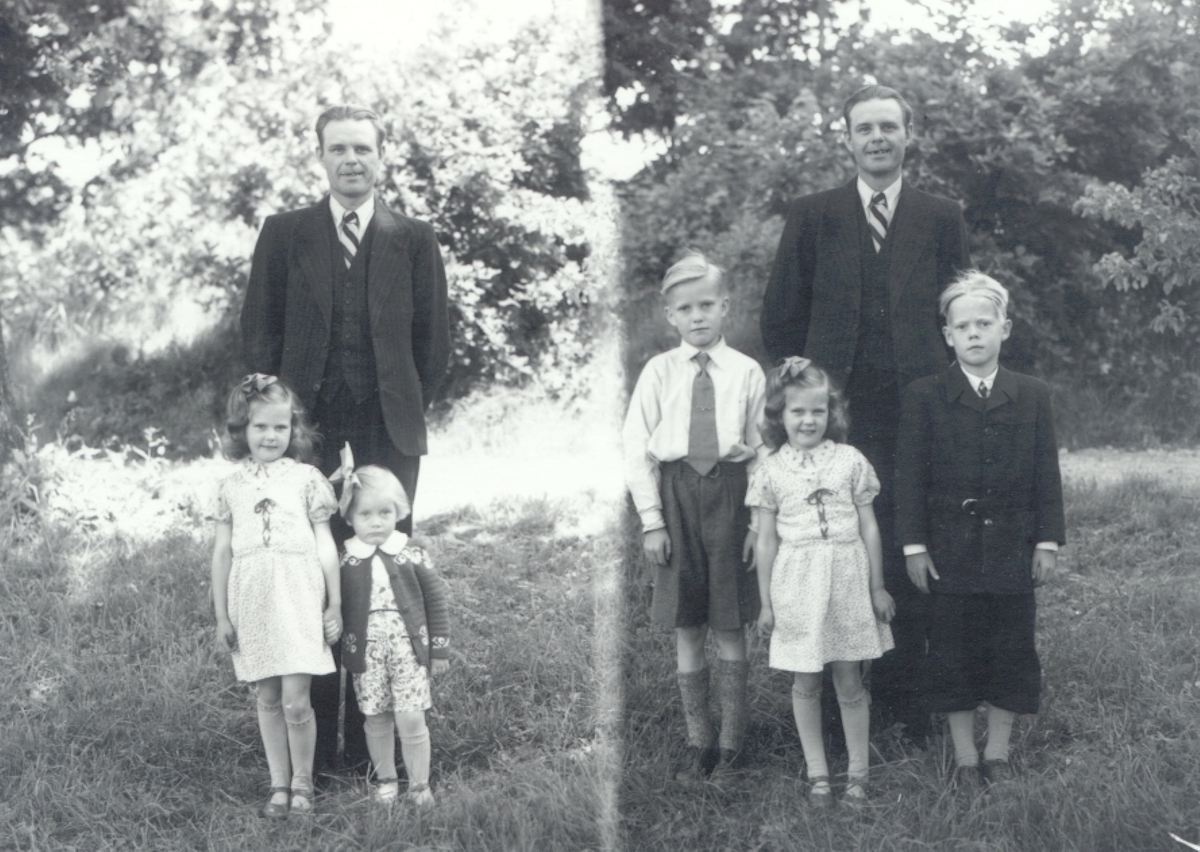 Vänstra bilden: Artur Pettersson, Virum Gudrun Pettersson gift Robertsson, Misterhult, Iva Johansson gift Sand, Misterhult. Högra bilden: Artur Pettersson, Virum. Bengt Pettersson, Misterhult, Gudrun Pettersson gift Robertsson, Misterhult, Bernt Pettersson, Virum.