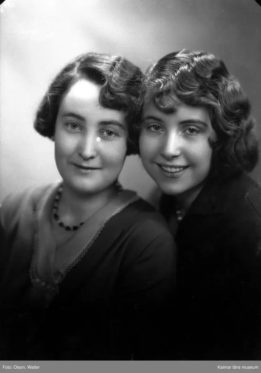 Gruppbild på två kvinnor, beställare: Fröken Vivi Svensson, Norra Långgatan 16, Kalmar.