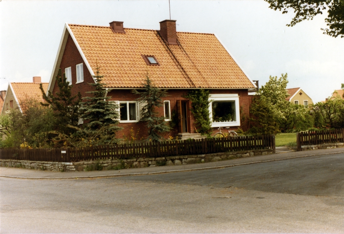 Bostadshus med tegelfasad och sadeltak på Norra vägen 82. Ägaren hette Jarkman och byggmästare var Bertil Danielsson.