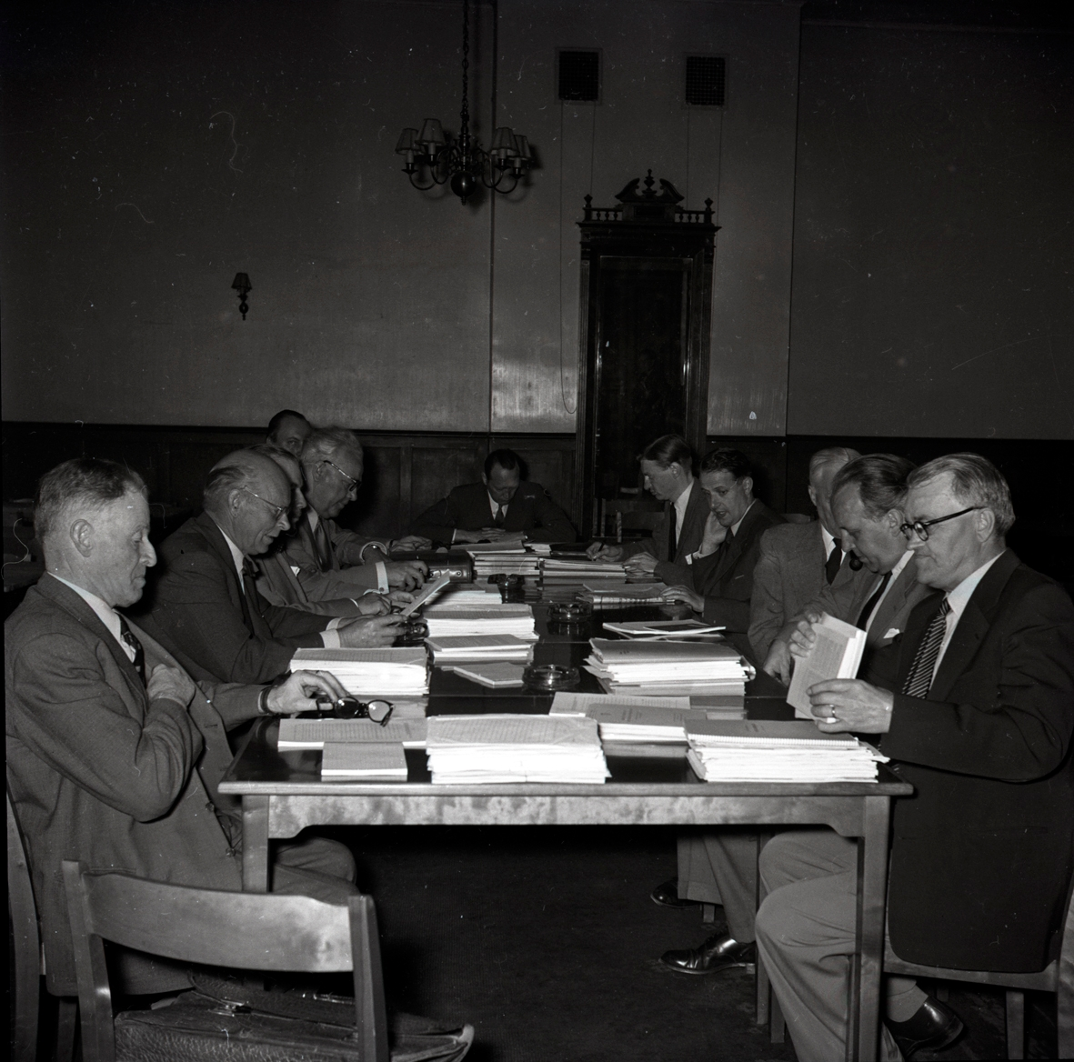 Titel: 1953 års kommunikationsutredning i februari med ordförande Per Åsbrink.