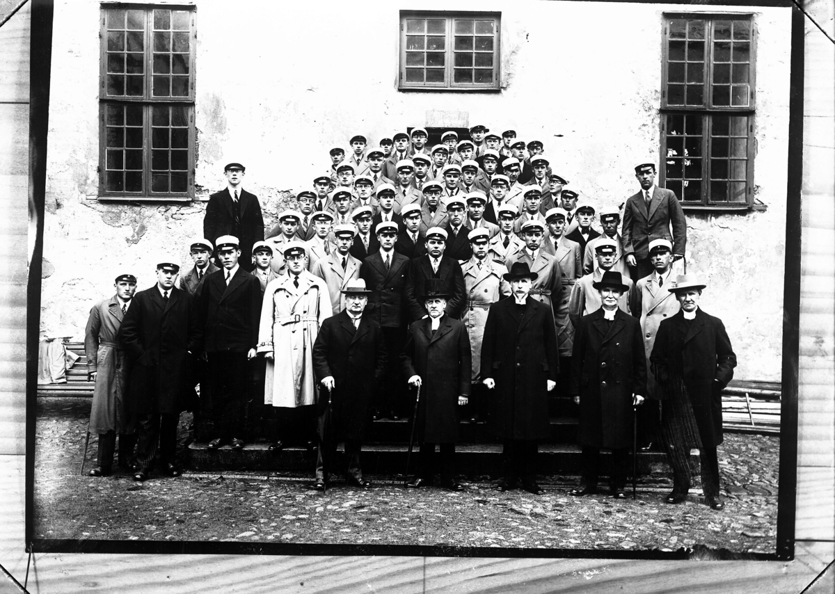 Gruppbild på studenter och präster på Kalmar slott. Beställare: Prosten Björk, Kalmar.