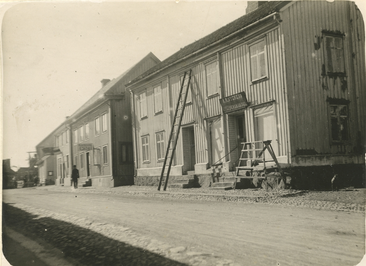 Mönsterås gamla landtorg, som var ett av Sveriges sista grustorg fram till början av 2000-talet, då man lade gatsten. De två närmaste husen är påbyggda marknadsbodar.