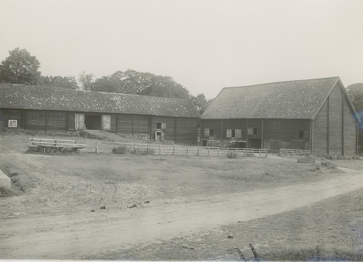 Forsby herrgård. Ladugården från nordväst. Mellan vägen och staketet har fry tidigare funnits en länga som slöt komplexets fjärde sida.