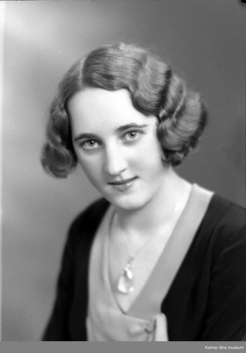 Ateljébild på en kvinna i halsband. Enligt Walter Olsons journal är bilden beställd av Anhild Thaung.