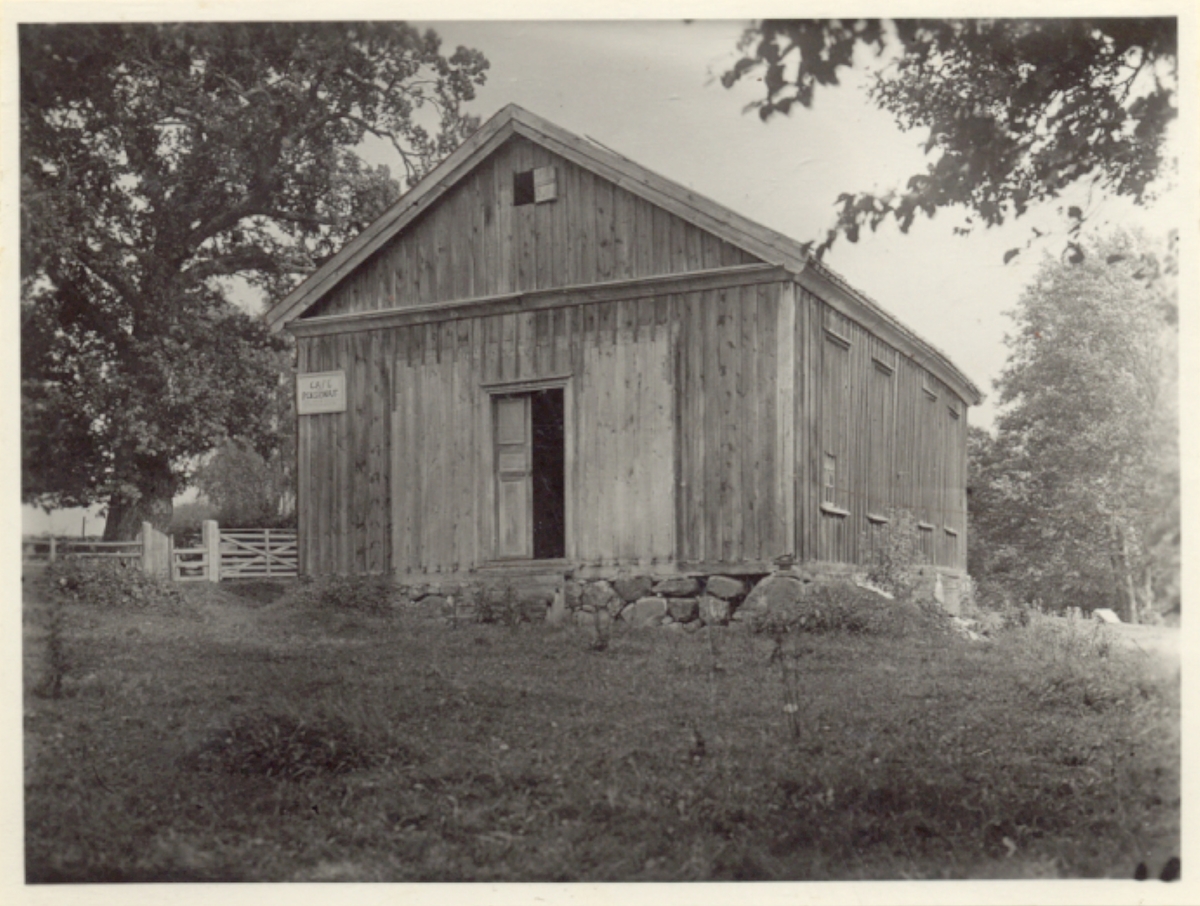 Vålningebo, en gamal brunnsort. Brunnssalongen, senare använd som magasin. I det inre finns rester av målade, enfärgade papptapeter. I sluttningen till höger om huset ligger en källa utan överbyggnad.