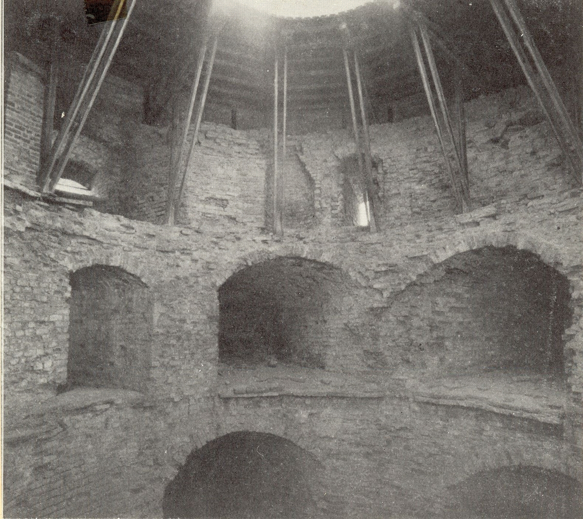 Västra postejen. Centralrummets interiör mot öster. Jämför plansch 43.