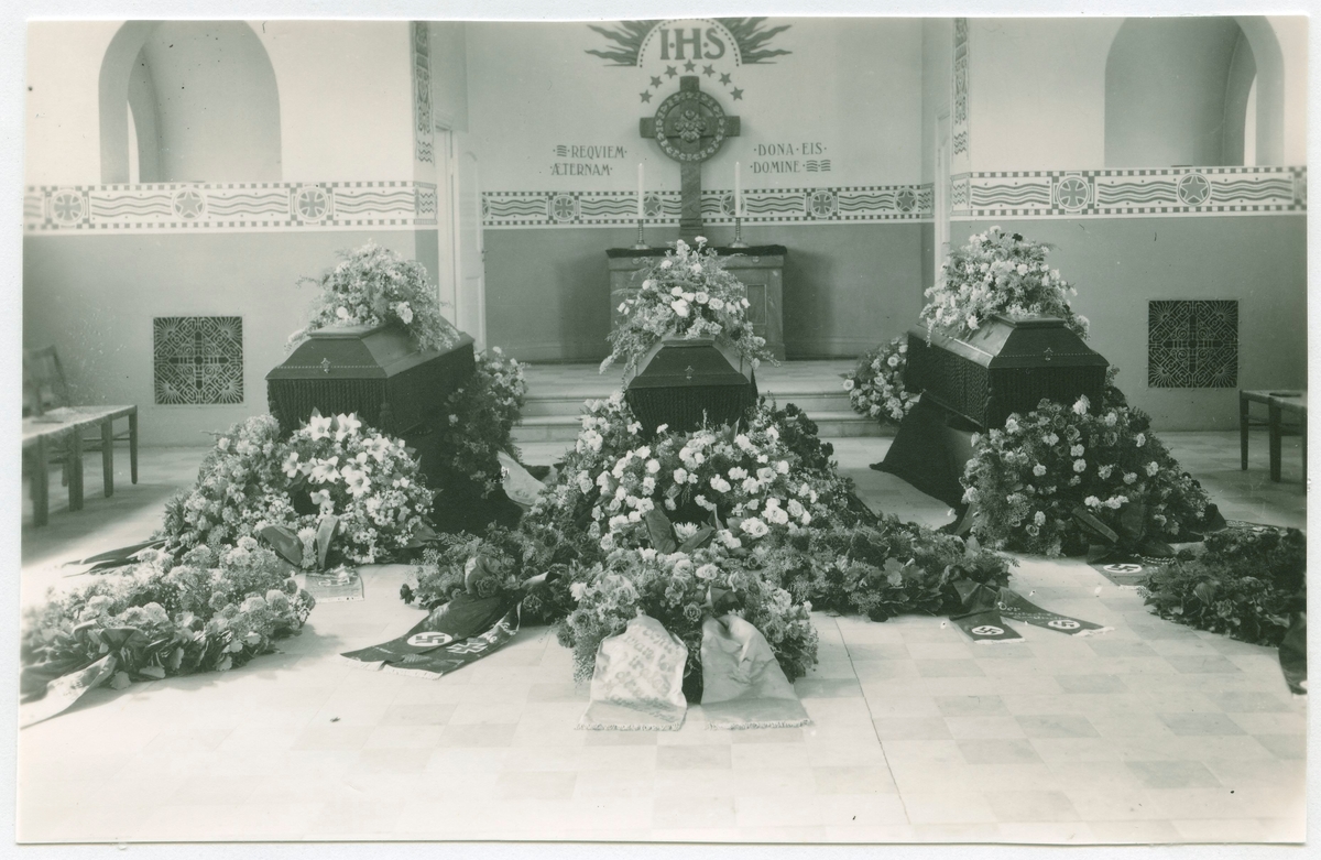Jordfästning av offren från minkatastrofen 1941. De begravdes i en gemensam grav på Norra kyrkogården men fördes under 1950-talet till Tyskland.